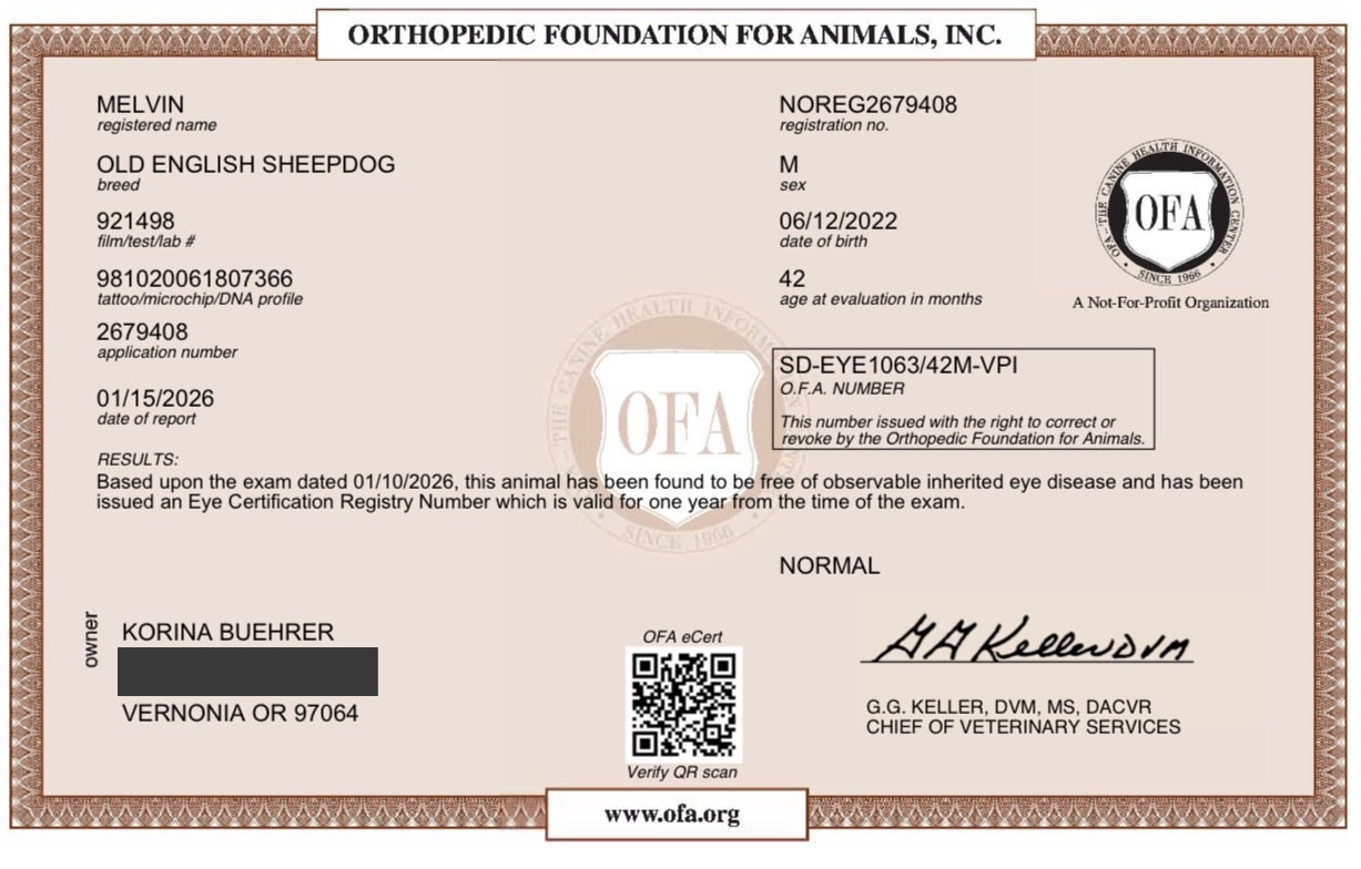 Melvin | Purebred Old English Sheepdog (OES)